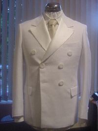 お笑いタレントの方の衣装です。タキシード風JKTに大きめボタンで可愛らしいイメージです。ポリ混の為、つかまれたりしてもシワになりません。