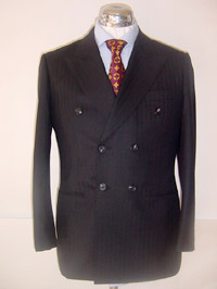 着丈短め、細身のタイトなダブルスーツです。ヘリンボーンの織り柄で上品な仕上りです。
