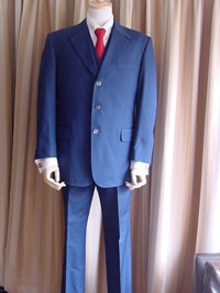 生地:伊 POLICARPO ・ ピーク襟 ・前1つ釦 ・釦全て包み ・襟縁、袖口、胸ポ ケ、パンツ腰ポケ、上着腰ポケ、全て拝絹パイピング ・胸ポケチーフ仕様 ・袖口 釦、パンツ腰ポケ釦共に本開き ・上着背中飾り釦、袋ベント・フレア袖