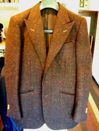 張りのある国産高級モヘアの上着に、イタリア ドラッパーズの滑らかなコールパン ツ。昼間のパーティーの王道、非常にお似合いで喜んでいただけました。